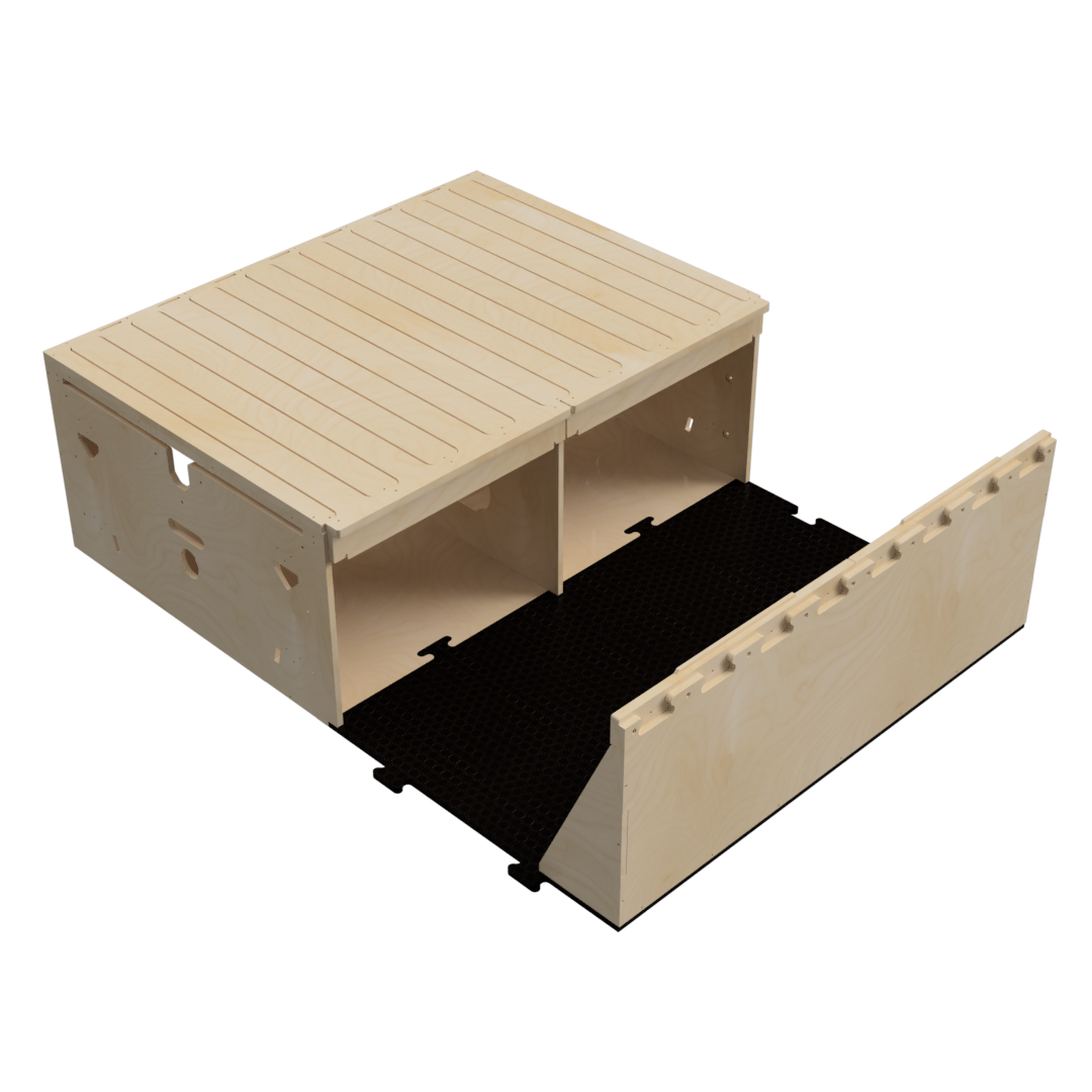 - Stauraum für Boxmodul 1 60 x 40 x 27 cm und Boxmodul 2 40 x 30 x 27 cm